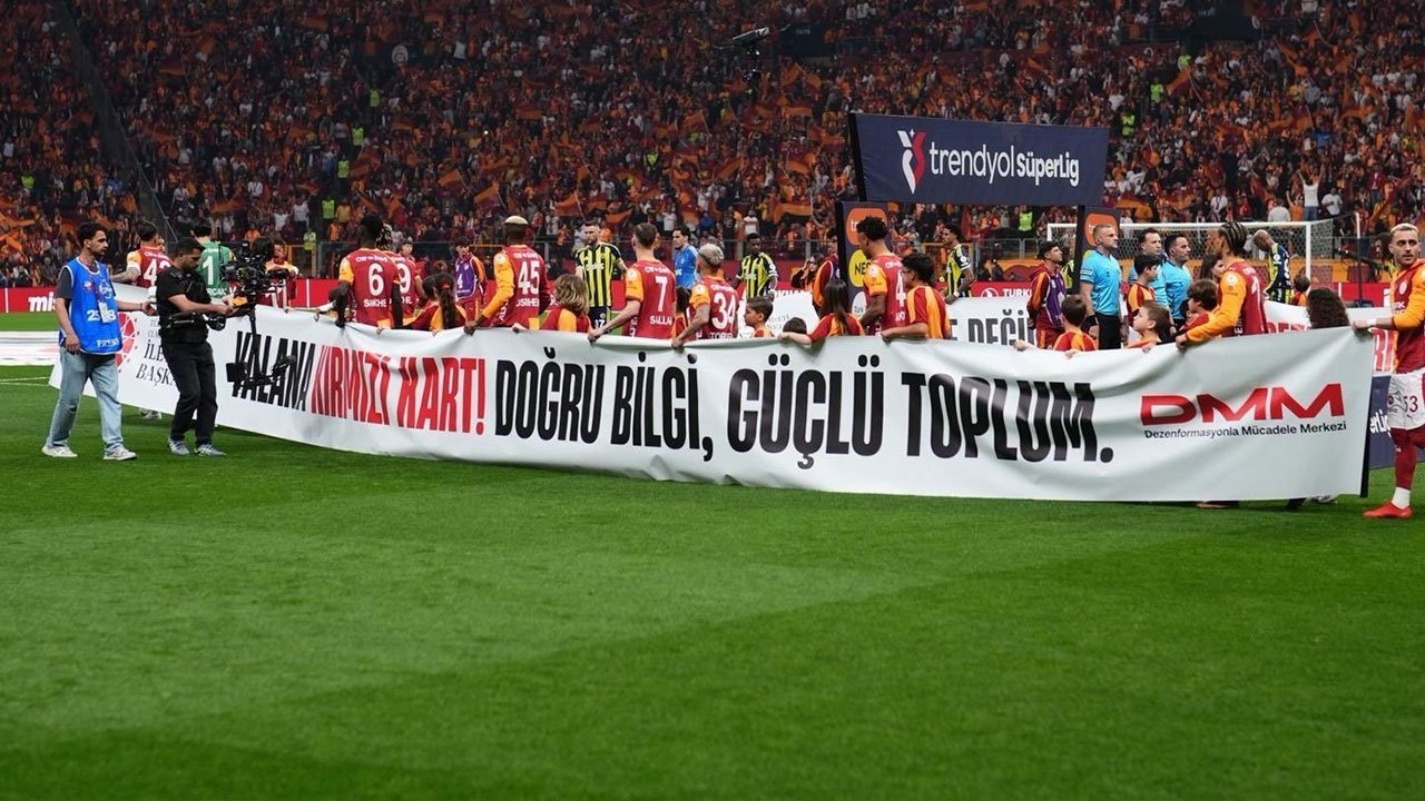 İletişim Başkanı Burhanettin Duran, sosyal medya hesabından yaptığı paylaşımda, “Sahadaki rekabeti anlamlı bir farkındalıkla taçlandıran ülkemizin iki köklü spor kulübü Galatasaray Spor Kulübü’nü ve Fenerbahçe Spor Kulübü’nü yürekten teşekkür ediyorum. Bugün yeşil sahada açılan bu pankartlar, sadece birer slogan değil; özellikle dijital dünyadaki güvenliğimiz için de önemli birer mesaj. Etkileşim tuzağına düşmeden, bilginin kaynağını sorgulayarak; dezenformasyona hep birlikte ‘dur’ diyelim. Unutmayalım ki; gerçeğin peşinde, manipülasyondan uzak bir gelecek için hepimize görev düşüyor” ifadelerine yer verdi.